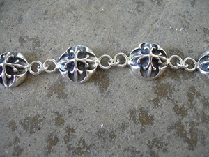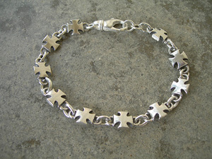Maltese crosses connect to create this solid silver bracelet with secure clasp.