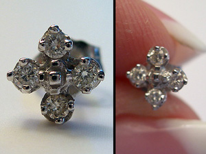 Tiny diamonds set in white gold, post back. Conbined diamonds are .25 carat.