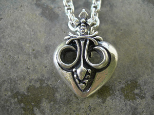 Silver crown topped heart medallion with silver bail on 20 inch silver chain and toggle clasp.
