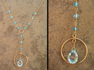 Gold filled chain, tiny blue topaz stones and dangling blue topaz teardrop.