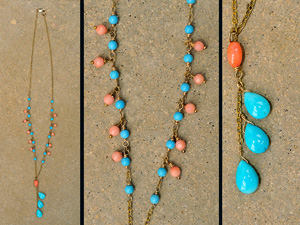Gold-filled chain with 'sleeping beauty'- turquoise and coral beads.
