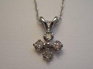 Tiny diamonds set in white gold on delicate 16 inch white gold chain.